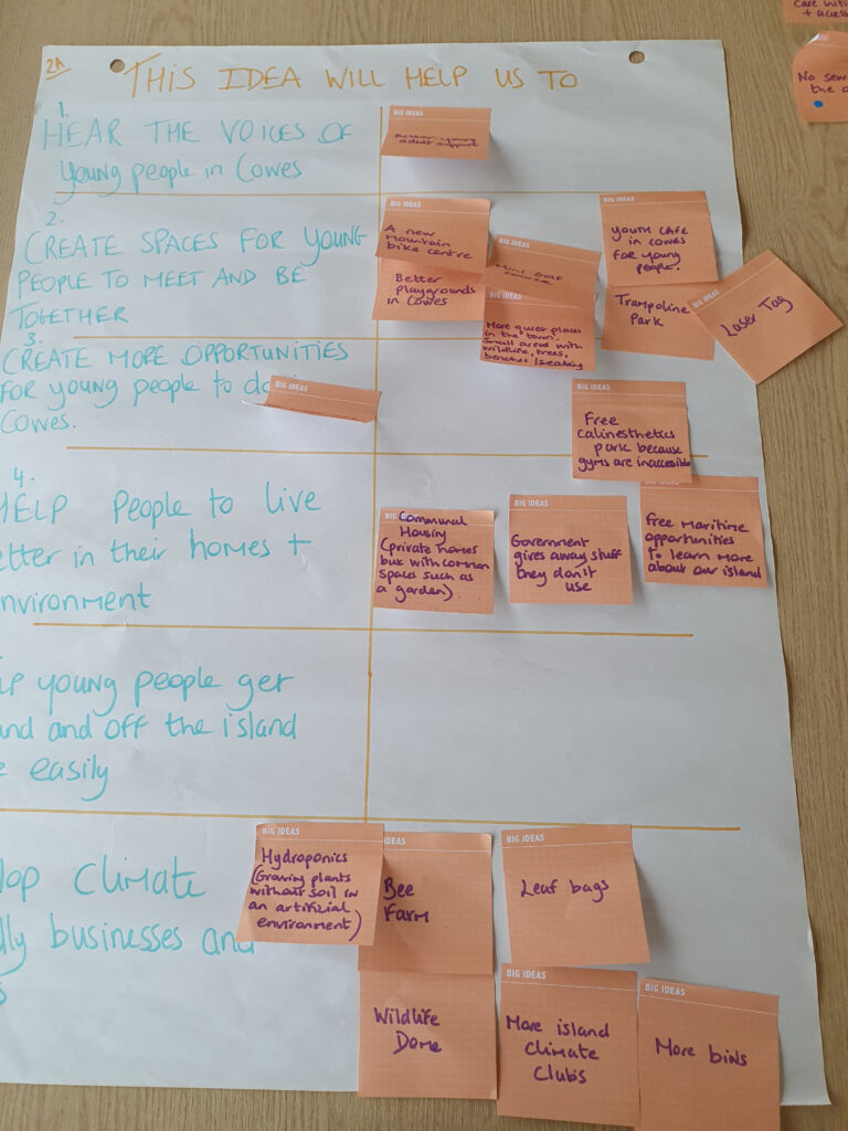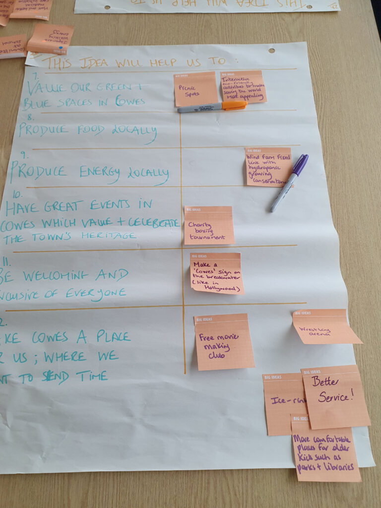 How do we empower young people to lead for positive change? These were the aims of the second follow-on workshop held Cowes Enterprise College on 14 October in collaboration with Connecting Cowes and the IOW Youth Trust. In the workshop, Cowes Mayor Stuart Ellis and the deputy Mayor Lora Peacey- Wilcox worked alongside fourteen students to share their ideas about the future of Cowes. The ideas produced by the young people will go out to wider school consultation and results will be integrated into the Connecting Cowes place-making programme. Our thanks to staff and pupils at Cowes Enterprise College and all collaborators on this project.